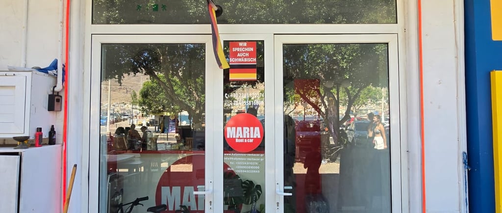 Mit deinem Mietwagen bist du frei: morgens Klettern in Masouri, nachmittags ein Picknick an einer einsamen Bucht, abends Sonnenuntergang über Pothia. Kein Stress, keine Fahrpläne, nur Abenteuer – genau das liefert Maria Rent A Car: zuverlässig, professionell und mit einem Augenzwinkern, das den Inseltrip perfekt macht.